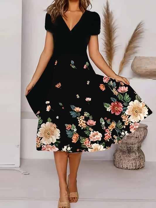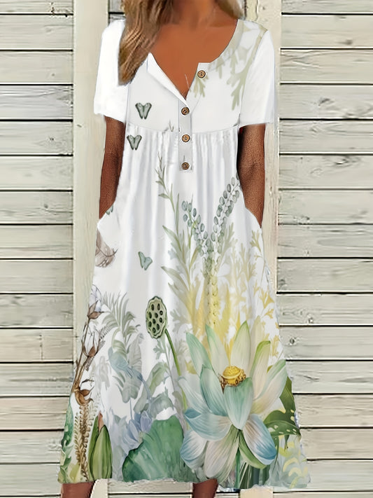 「lovevop」Casual Solid Loose Dress, V Neck Short Sleeve Vacation Dress, Casual Every Day Dress, Women's Clothing
