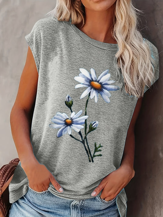 「lovevop」Cold Shoulder Flag Print T-Shirt, Casual Crew Neck Short Sleeve T-Shirt For Spring & Summer, Women's Clothing