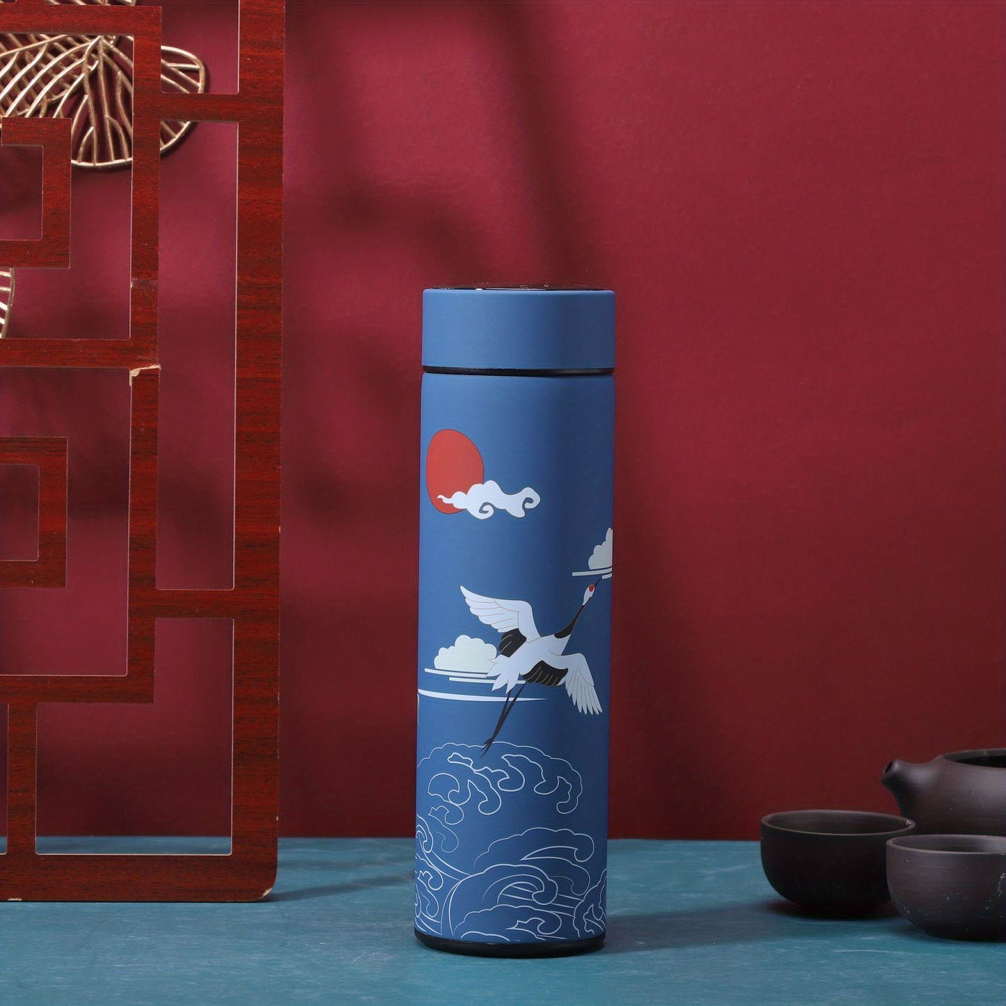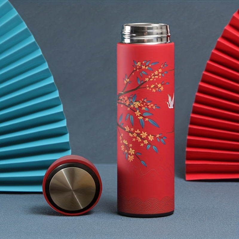 1pc 304 Stainless Steel Insulated Chinese Style Cup - Artistic Portable Tea Maker for Male Students - Unique Trendy Design for Coffee & Water