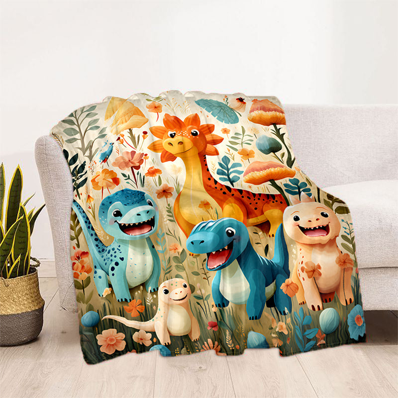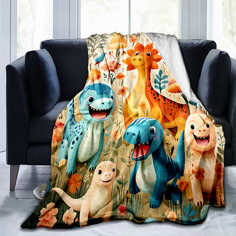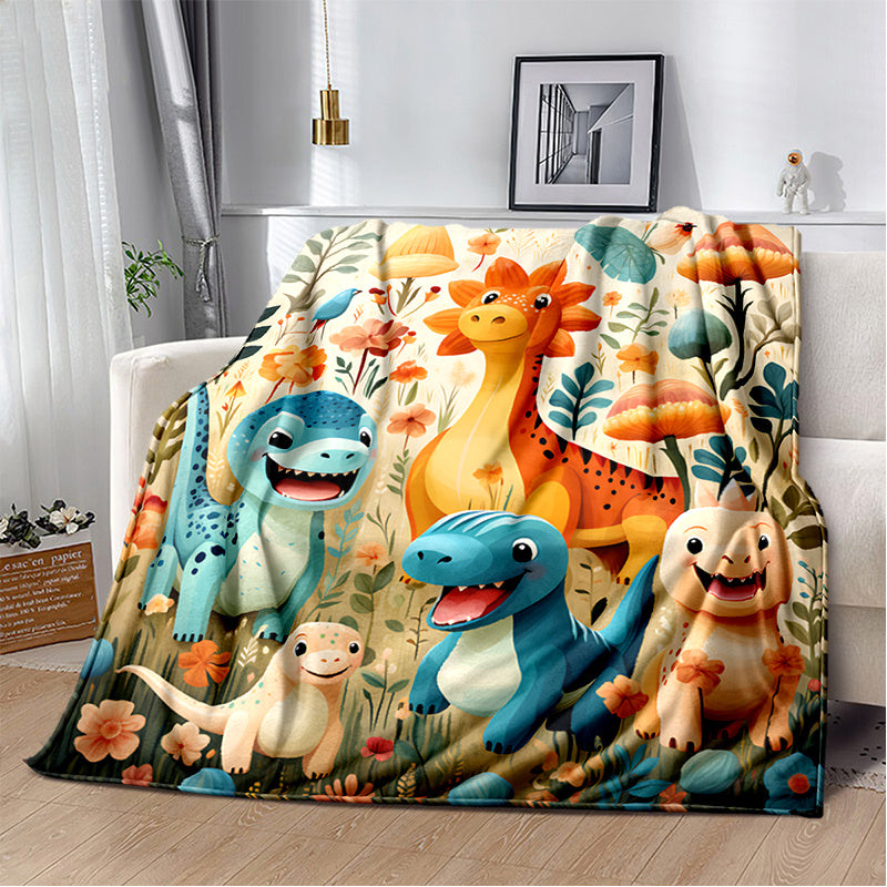 1pc Cozy Cartoon Dinosaur Paradise Print Fleece Blanket - Ultra-Soft, Lightweight, Warm, and Vibrant Digital Printing Flannel Throw for Sofa, Bed, Travel, Camping, Living Room, Office, Couch, Chair, and Bed - Perfect Gift for Family or Friends