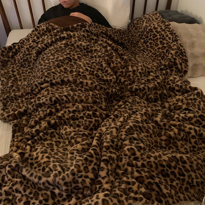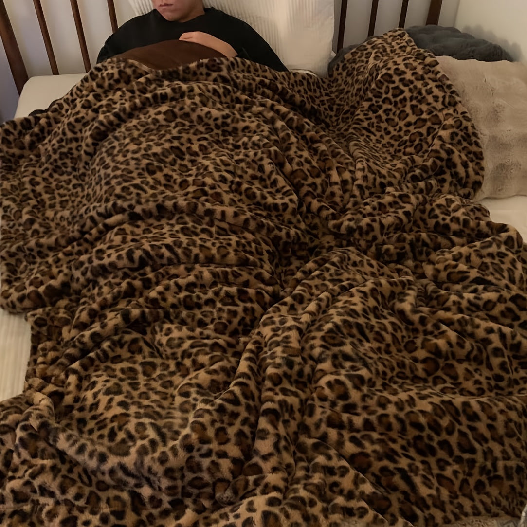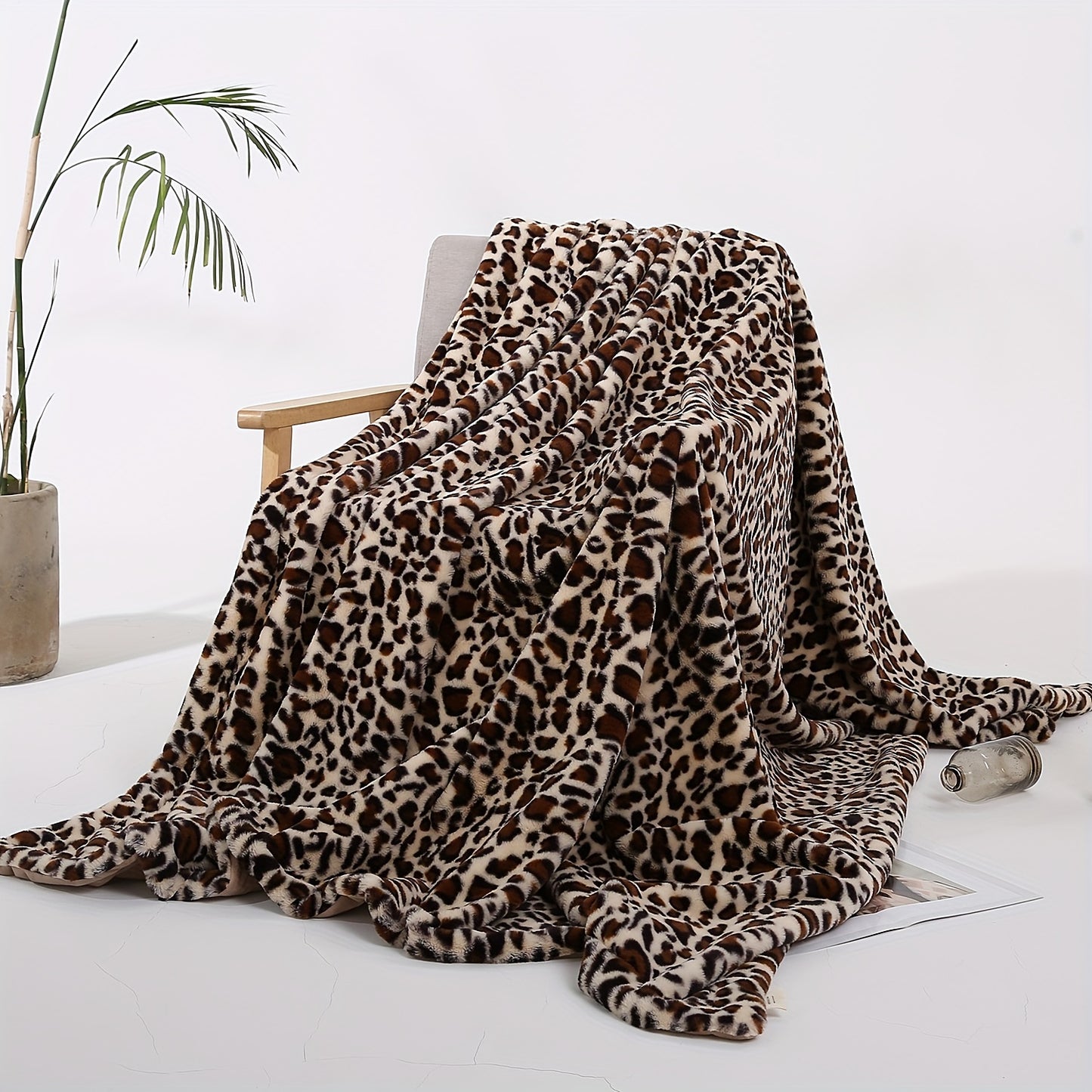 1pc Plush Faux Rabbit Fur Leopard Print Double-Layered Soft Blanket - Cozy Lunch Break, Sofa, Couch, and Home Throw for Nap and Relaxation - Stylish, Reversible, and Easy to Care