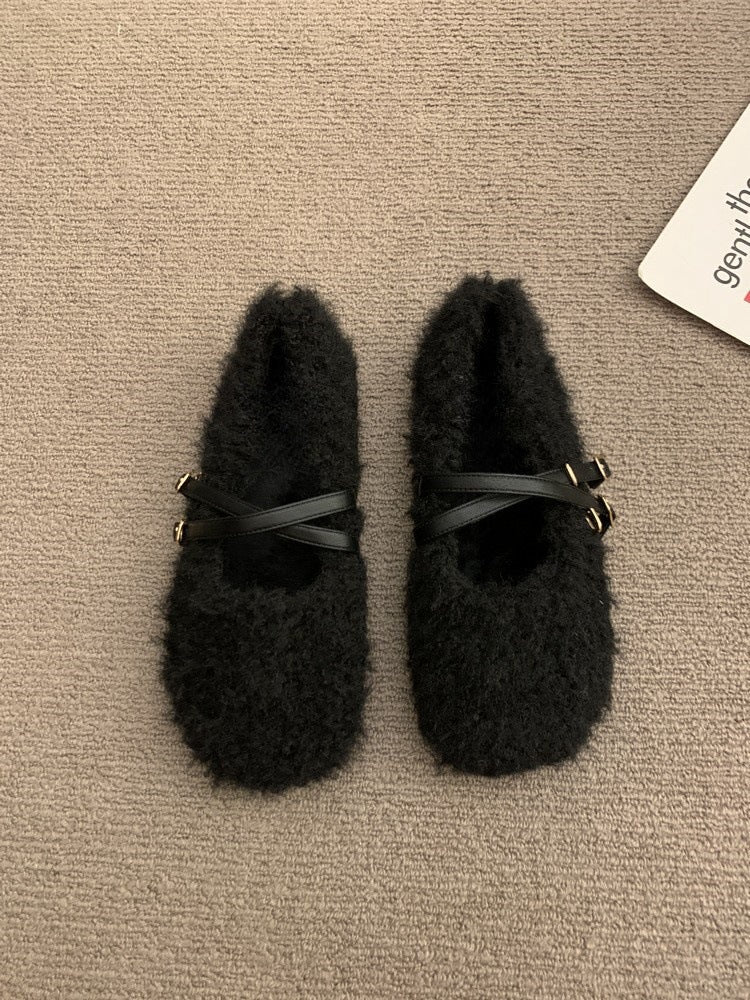2025 evening wind cross buckle belt Mary Jane cotton shoes women's popular autumn and winter new wear comfortable and versatile Mao Mao shoes