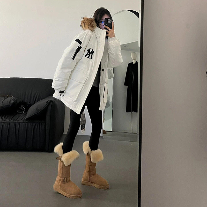 2025 Gray snow boots women's popular new retro two-wear medium tube velvet but knee knight boots