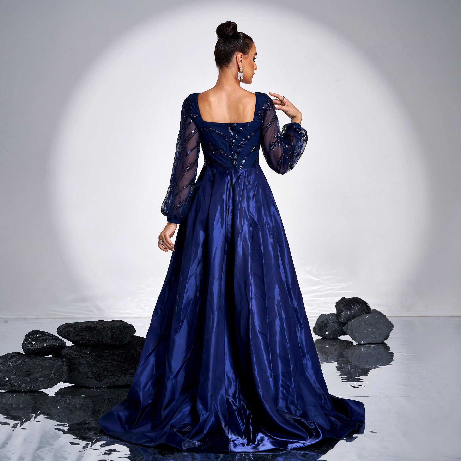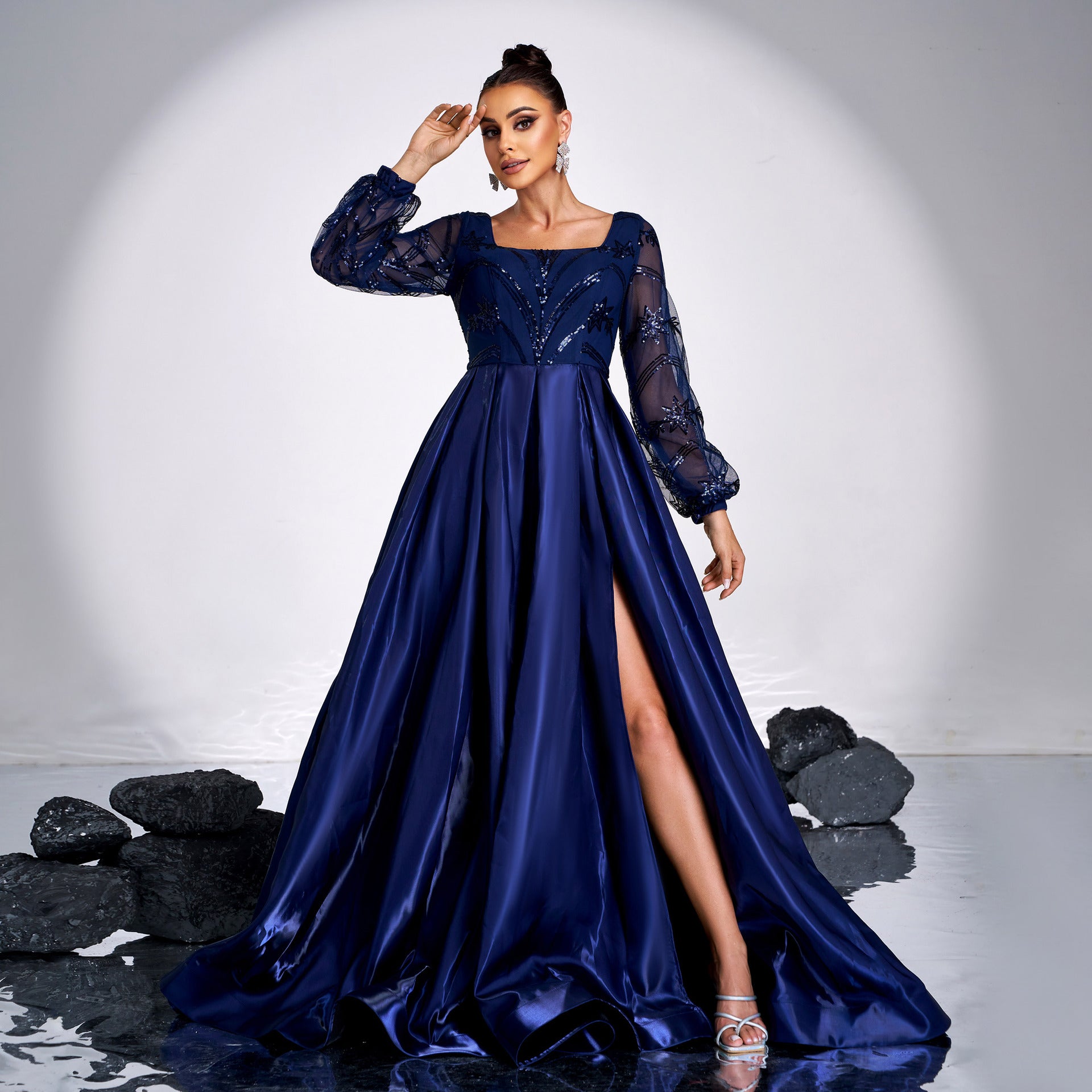 2025 high-end temperament long-sleeved square collar long sequined banquet big pendulum evening dress bridesmaid dress women