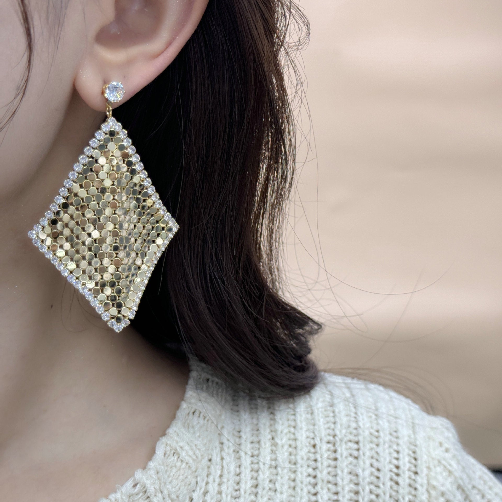 2025 New geometric rhombus sequined earrings s925 silver needle high-end exaggerated atmosphere zircon inlaid earrings earrings