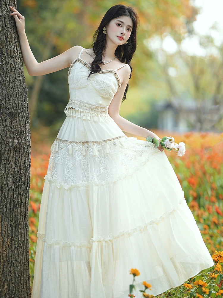Bohemian retro dress women's summer seaside vacation skirt Yunnan Lijiang travel wear suspender suit