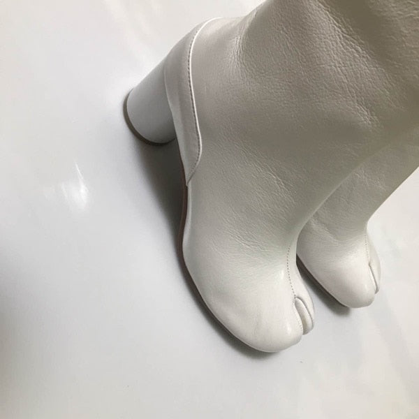 Thanksgiving lovevop Botines Mujer Chunky High Heel Short Ankle Boots For Woman Square Toe Black Patent Leather Rain Boots Luxury Tabi Bottes