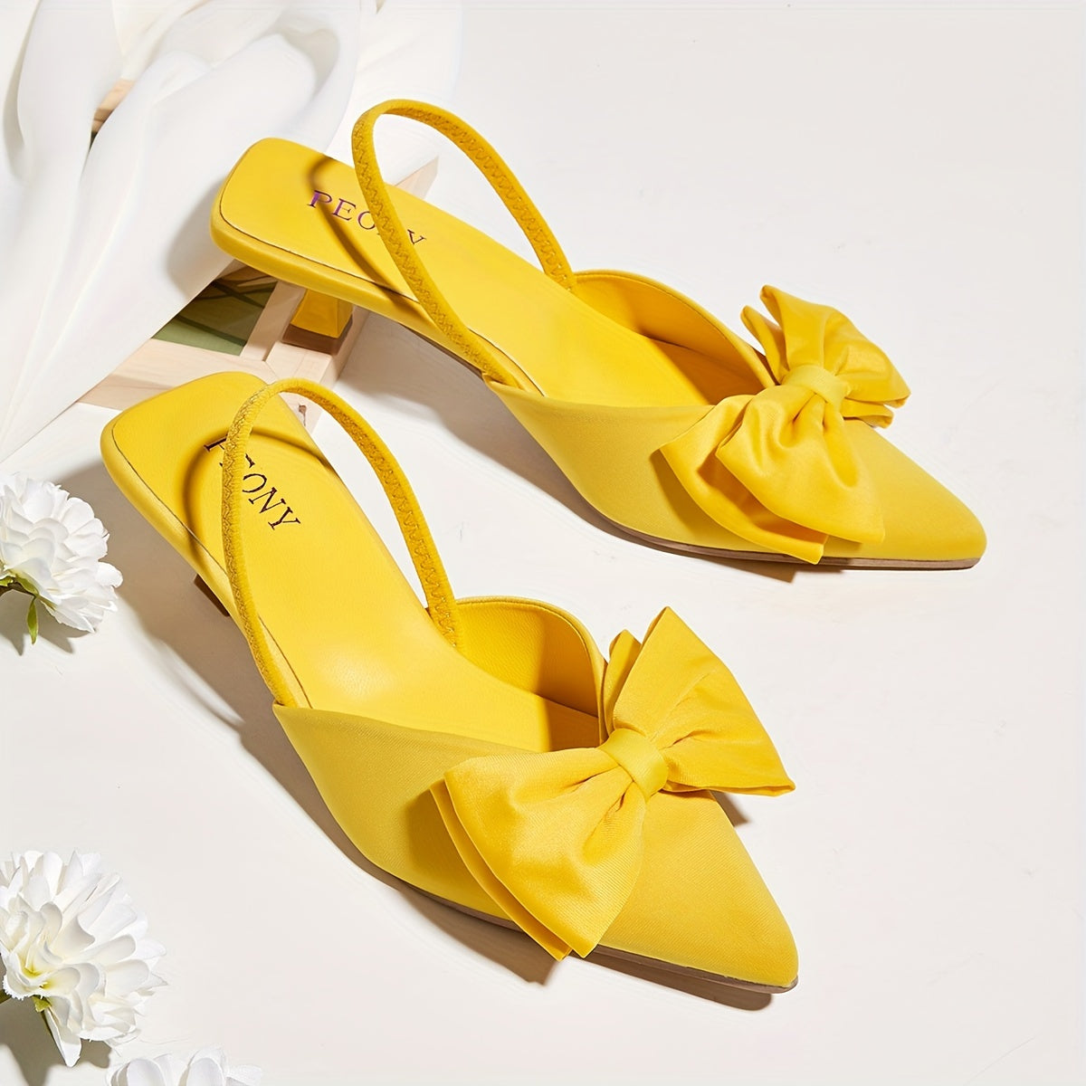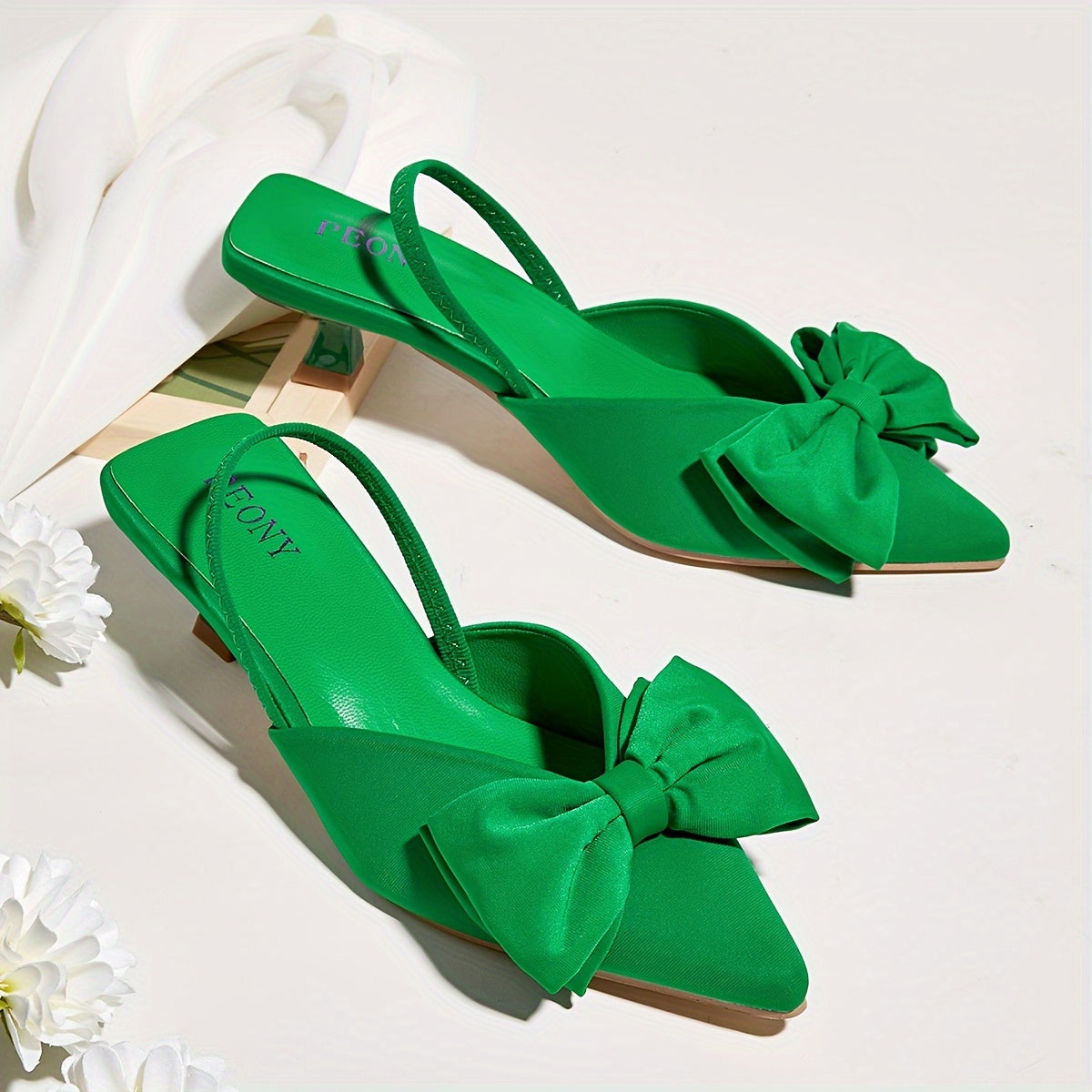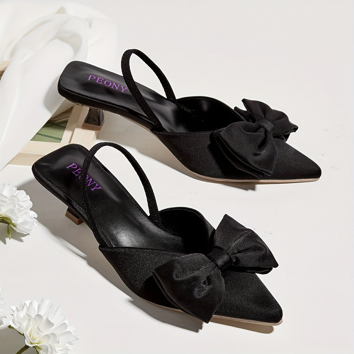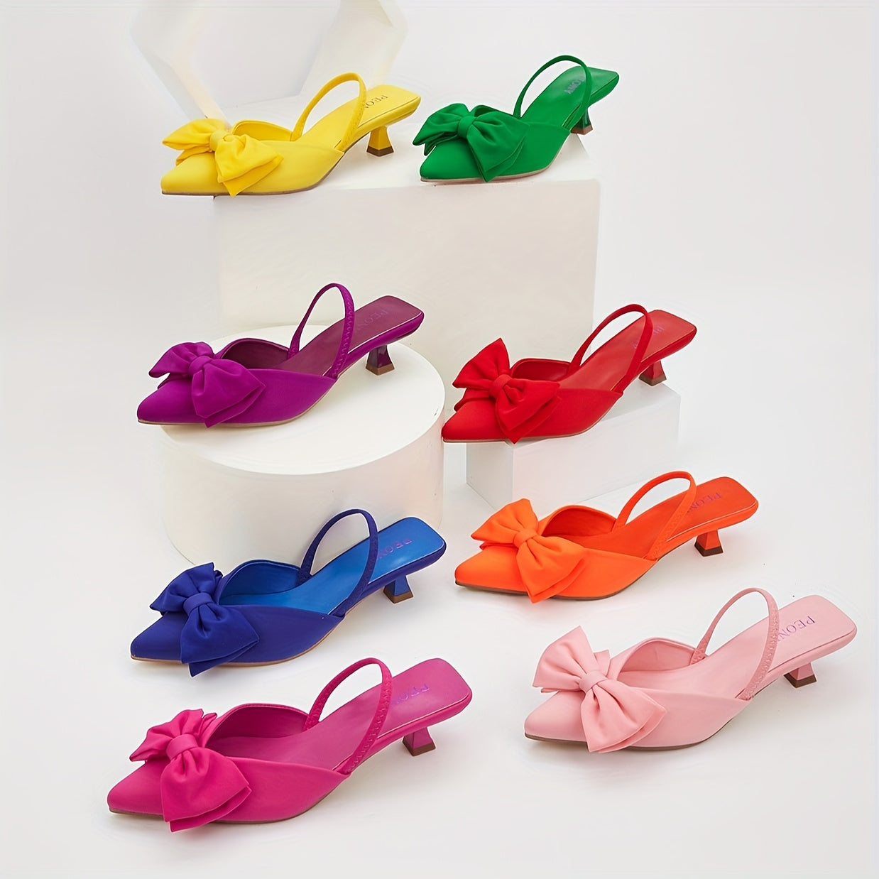 Chic Bowknot Kitten Heels Sandals - Solid Color Pointed Toe Slingback - Comfortable Slip-On for Women - Versatile Low Heels