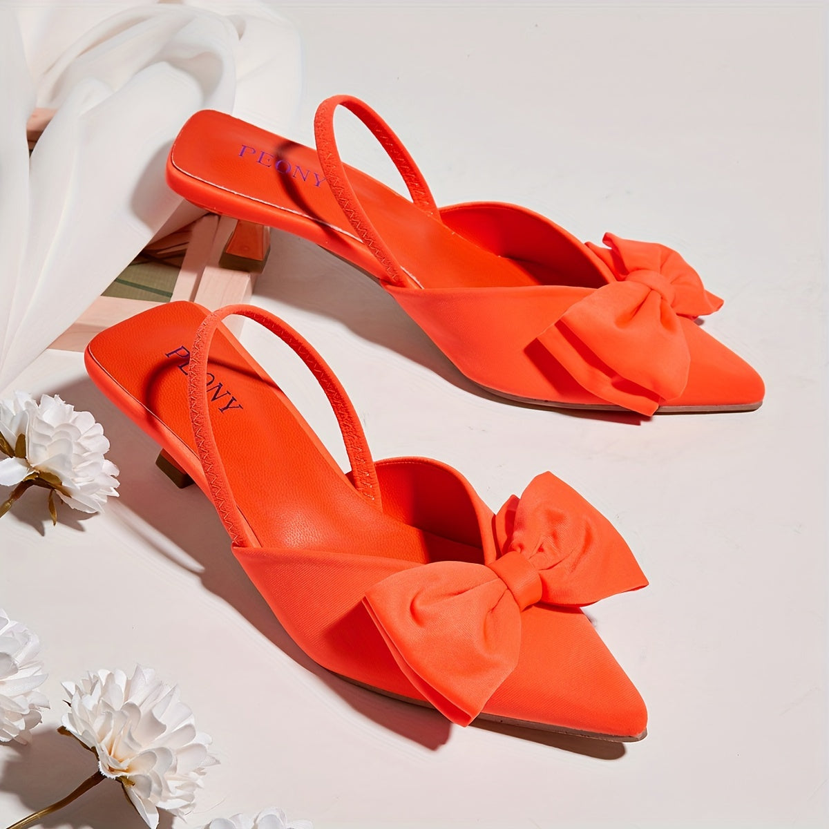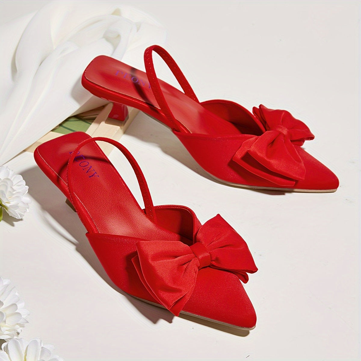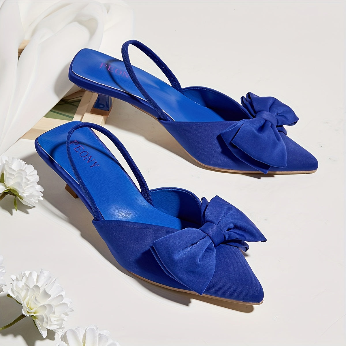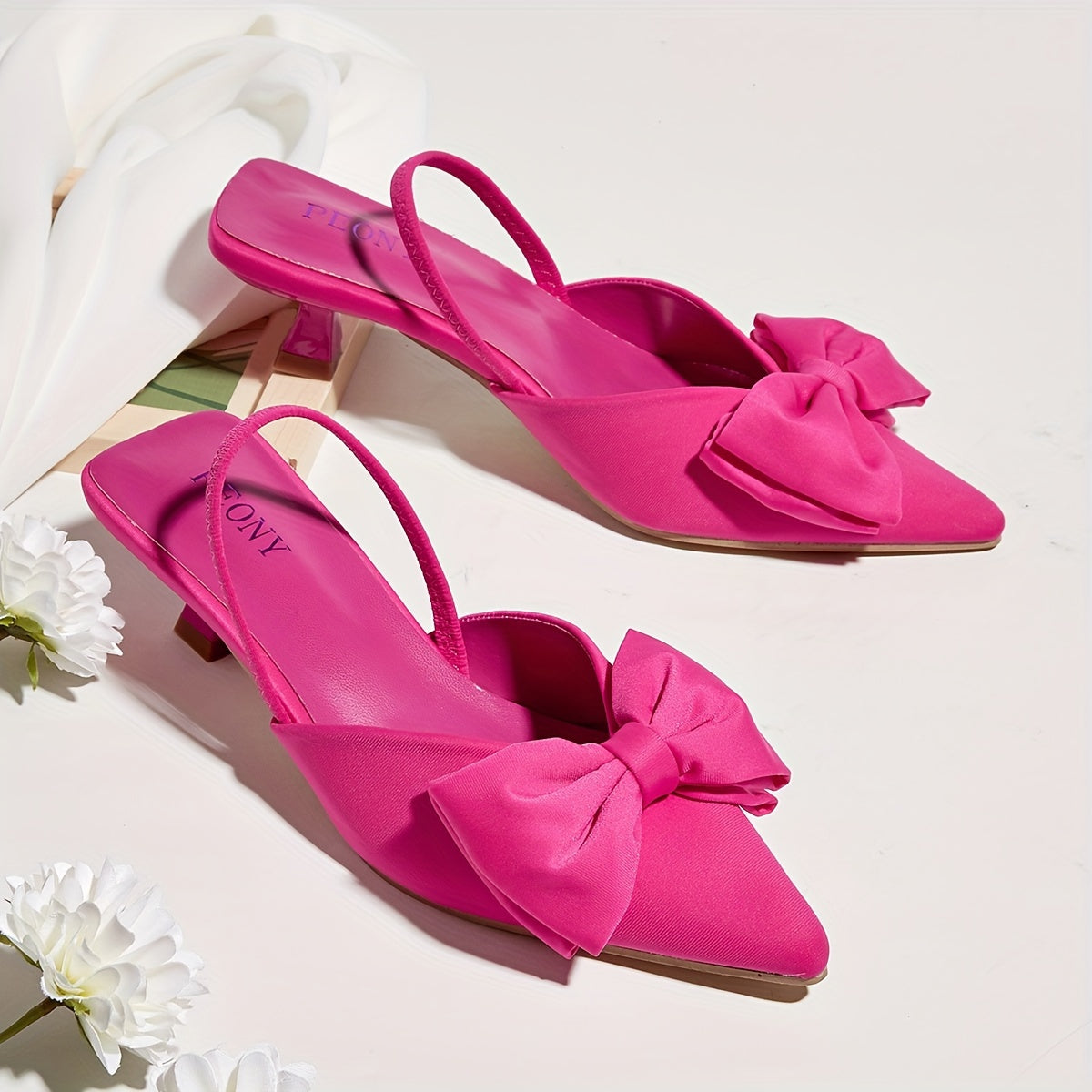 Chic Bowknot Kitten Heels Sandals - Solid Color Pointed Toe Slingback - Comfortable Slip-On for Women - Versatile Low Heels