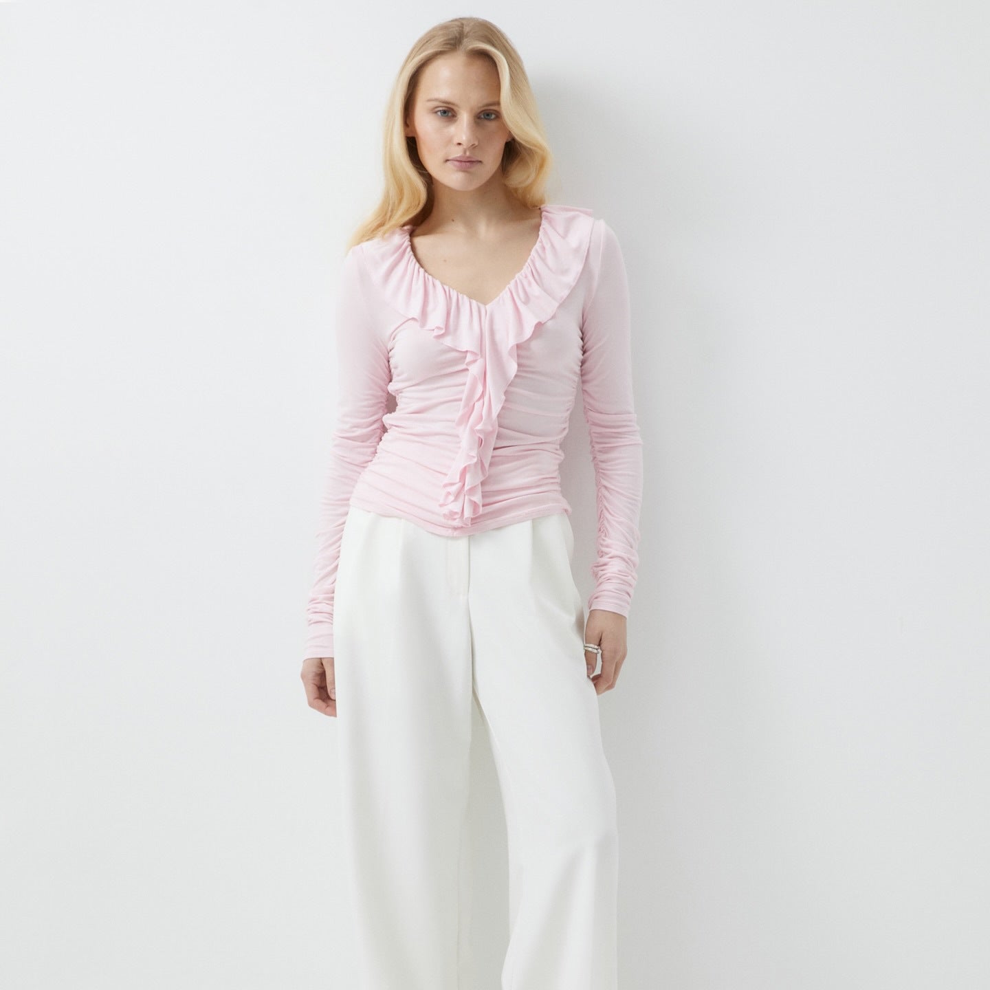 Chiffon shirt women's V-neck thin pleated design long-sleeved top spring three-dimensional tailoring commuter casual temperament top