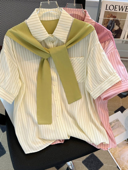 Lovevop Commuter Shawl Striped Short Sleeved Shirt