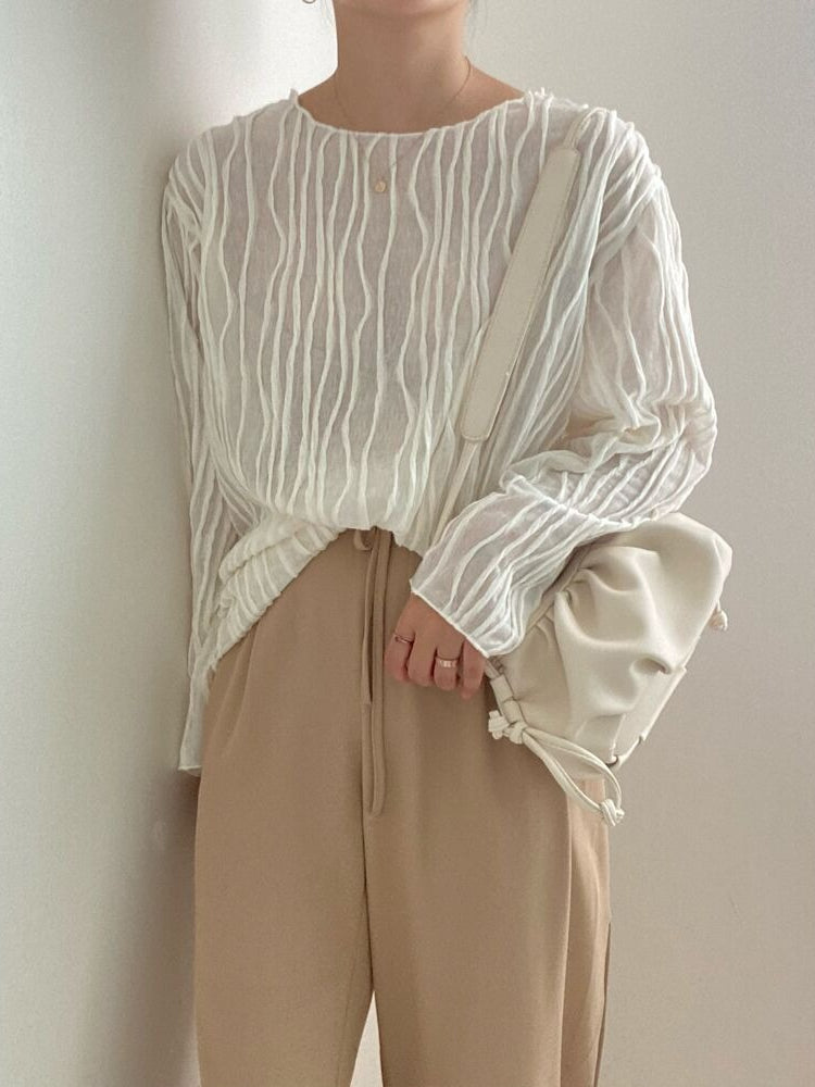 lovevop Elegant 3D Texture Long-sleeved Shirt