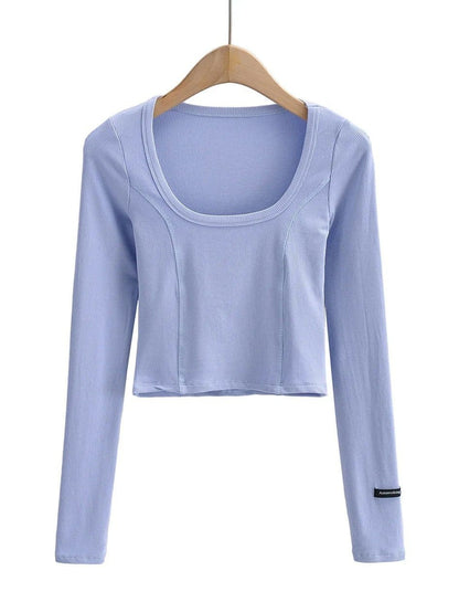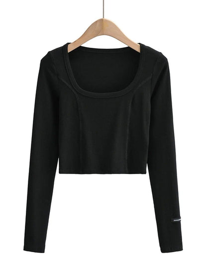 lovevop Fall White Fitted Long Sleeve T-Shirt Top For Women