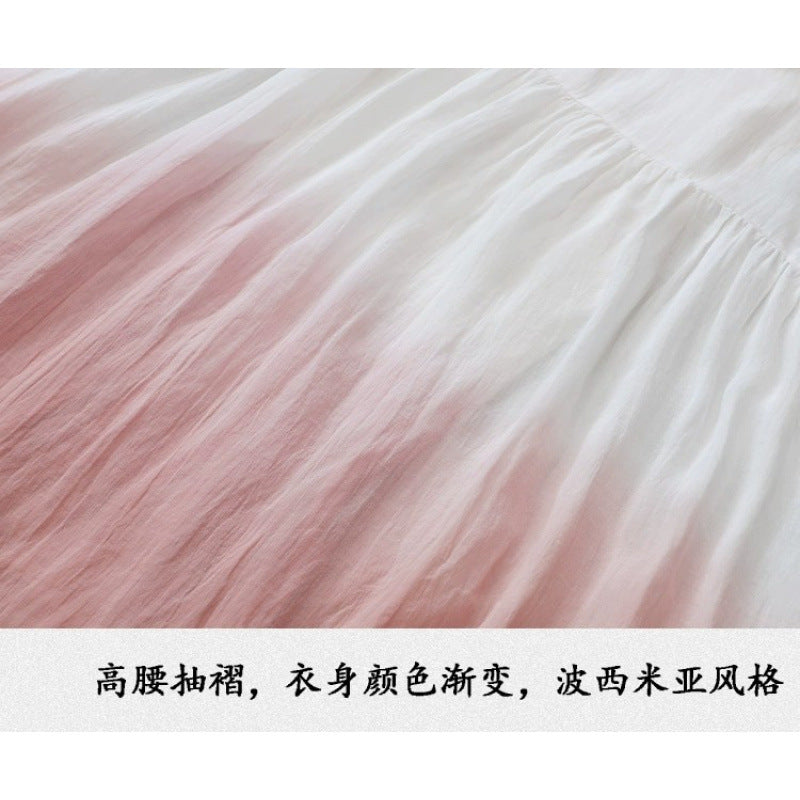 Five-quarter sleeve ramie dress summer new gradual change design large size cotton and linen loose dress