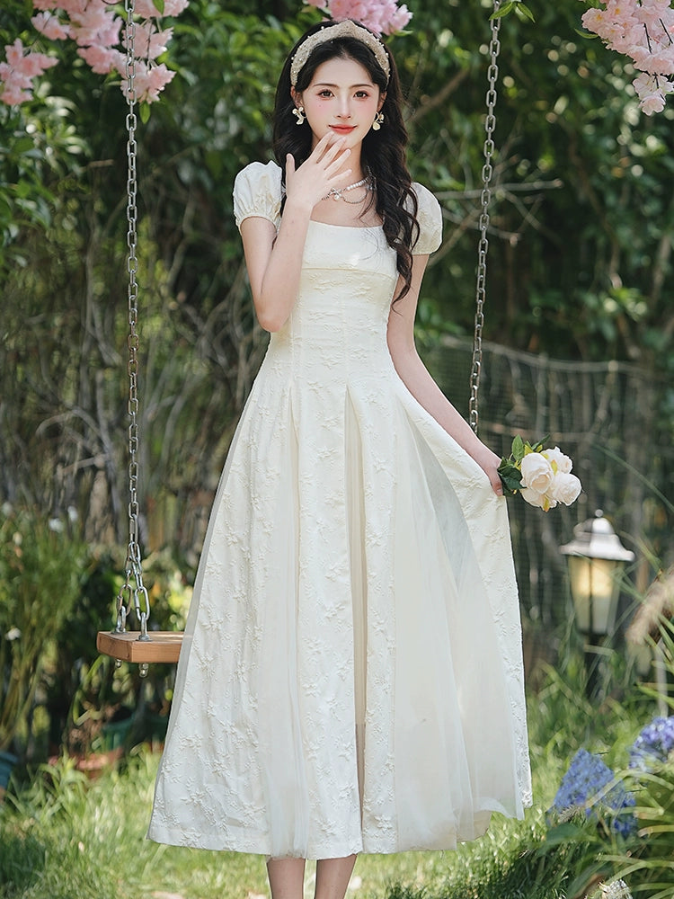 Huge good-looking skirt temperament white dress women's summer mesh yarn first love license dress dress Dingdal skirt