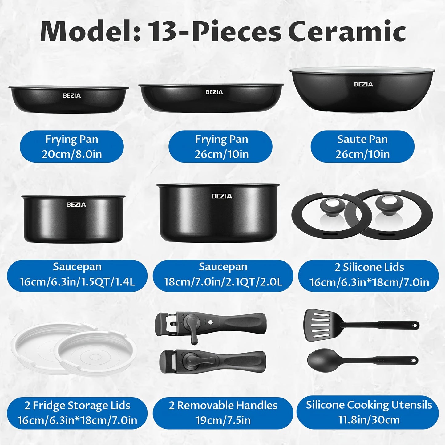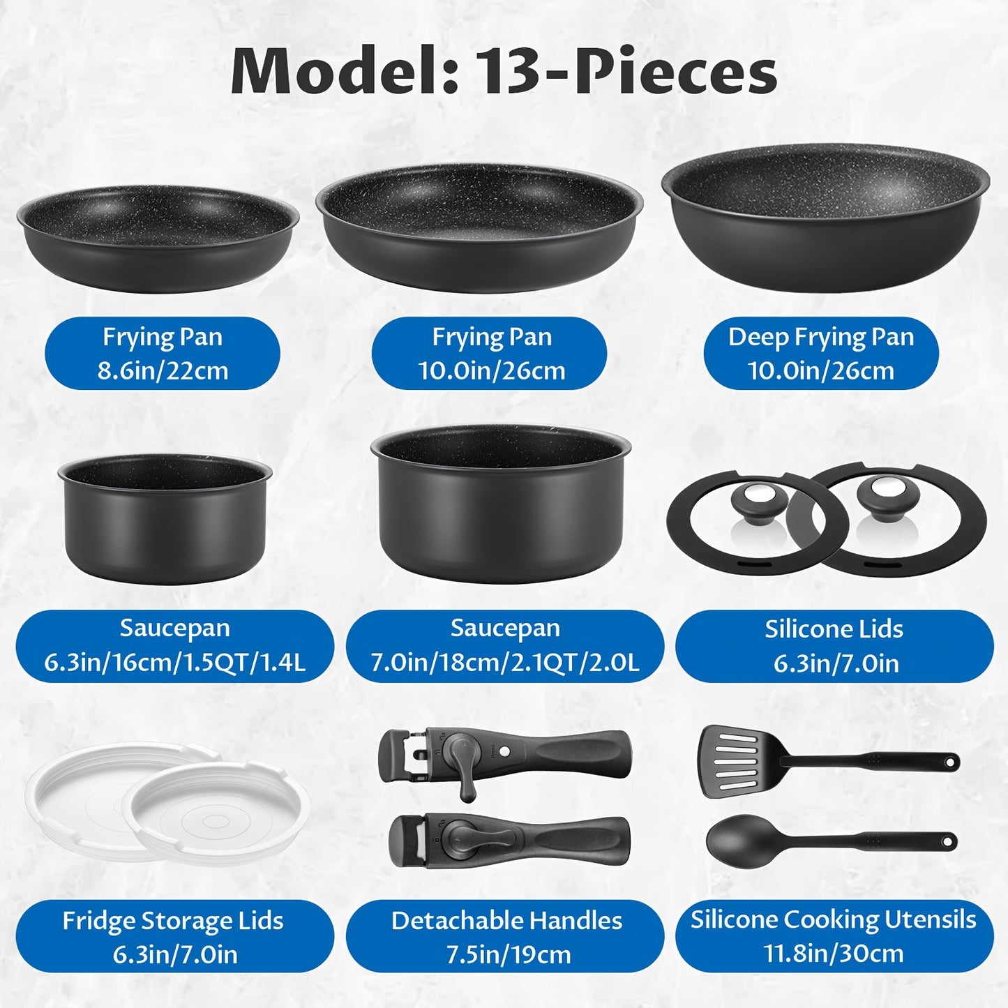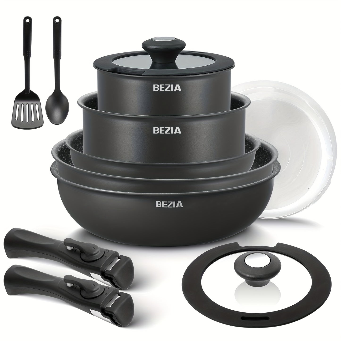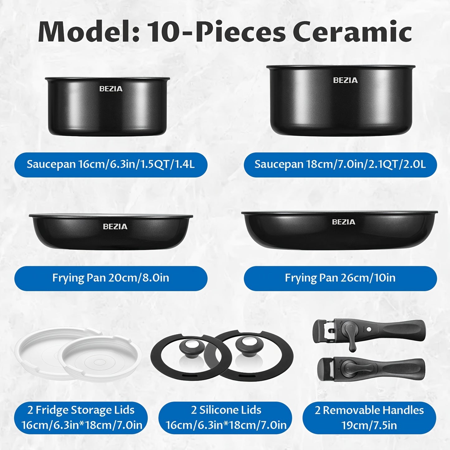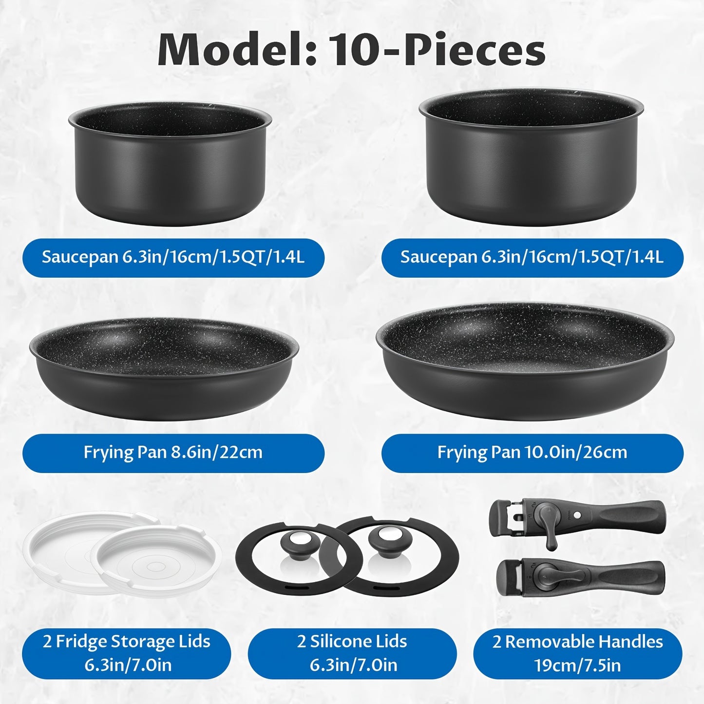 Induction Cookware Set 10 Pieces, Nonstick Pots and Pans Set with Removable Handles, for All Hobs, Stackable Design, Dishwasher/Oven Safe, PFAS Free