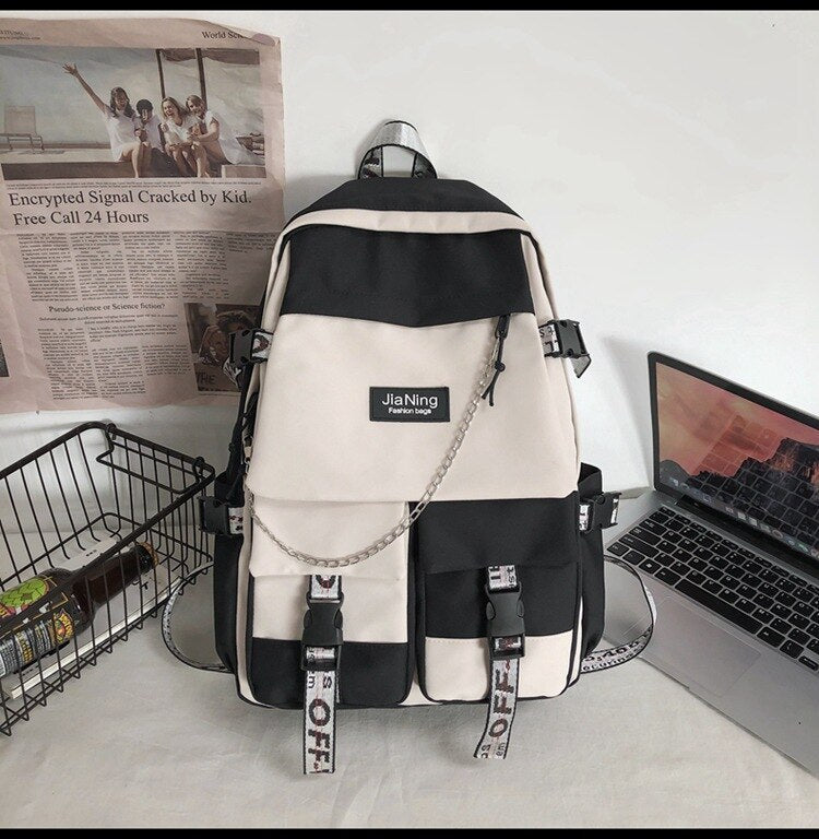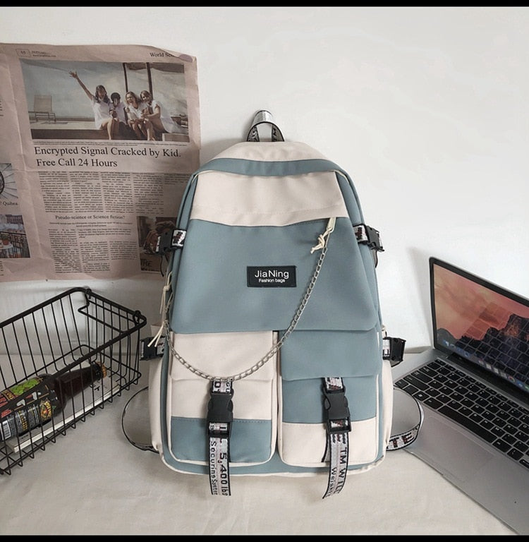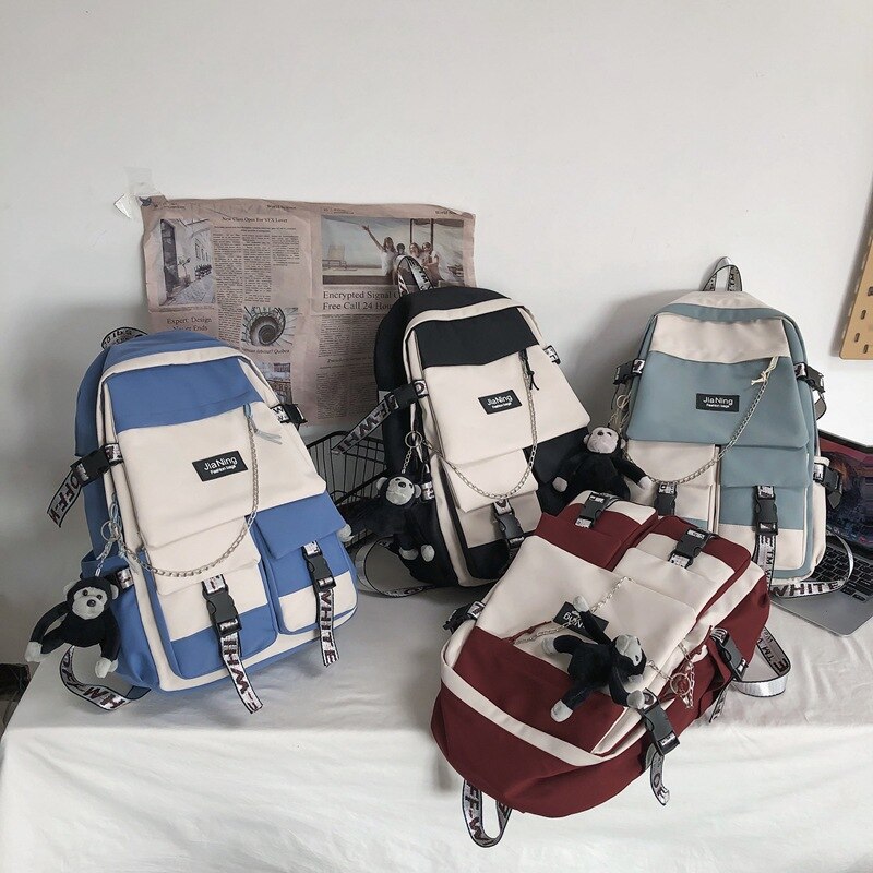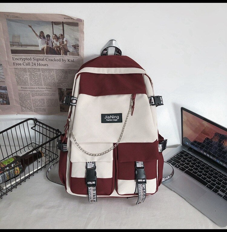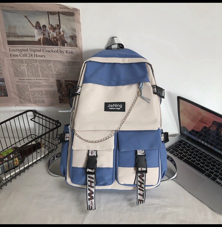 maoxiangshop - Japanese Work Clothes Women's Backpack for Girls Panelled Middle High School Bags for Teens Waterproof Women Backpack Luxury New