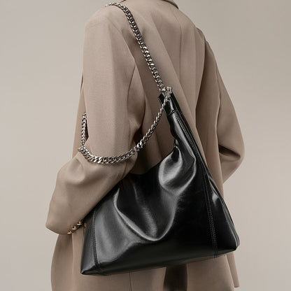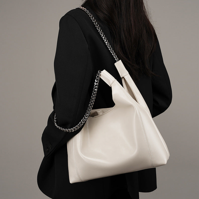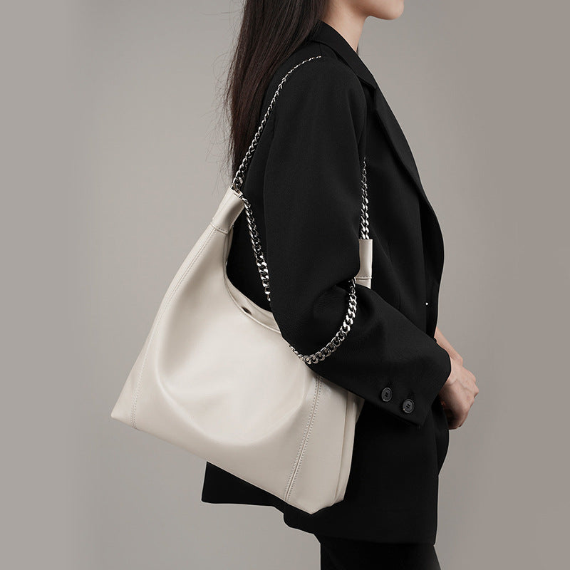 Korean chain tote bag large-capacity bag popular new bag fashionable commuter cowhide women's bag shoulder bag