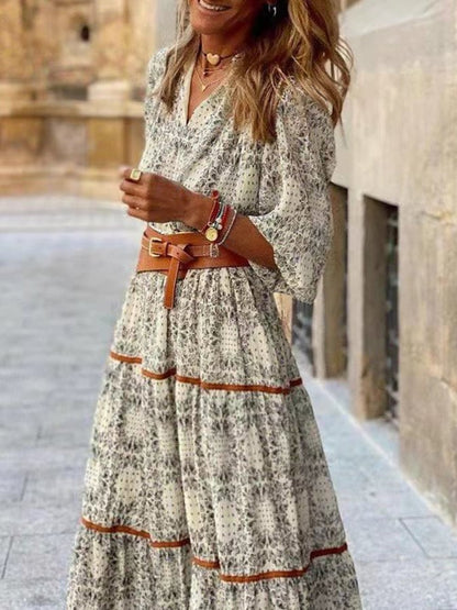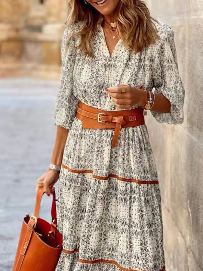 Loose Puff Sleeve Printed Long Sleeve Dress