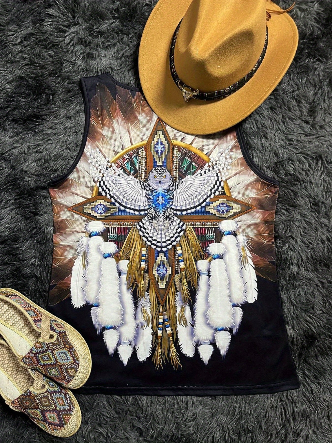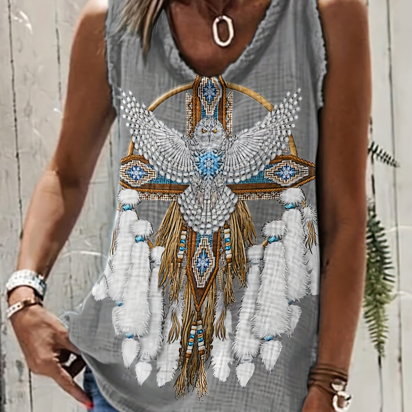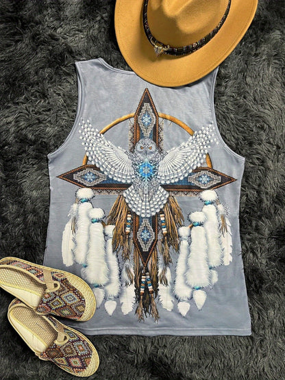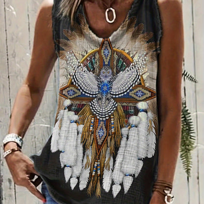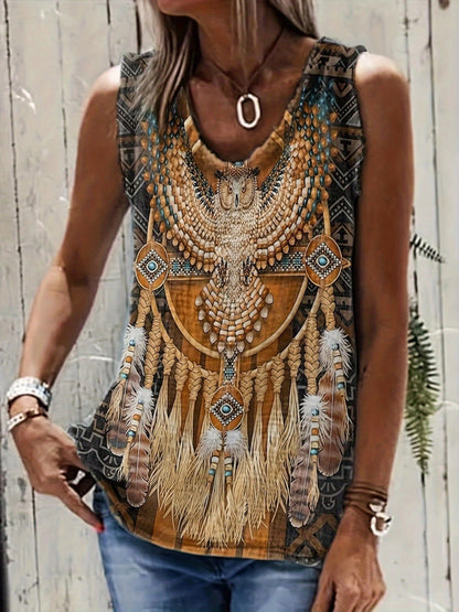 「lovevop」Ethnic Aztec Print Round Neck Tank Top, Vintage Loose Fashion Sleeveless Summer Vest Tank Top, Women's Clothing