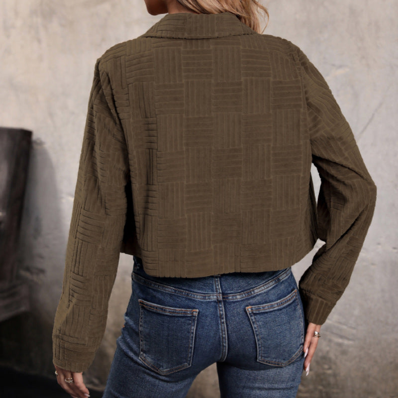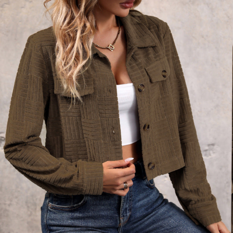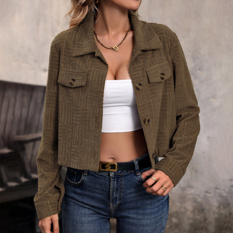 LOVEVOP Europe and the United States Hot autumn new corduroy jacket short coat lapel early autumn coat women