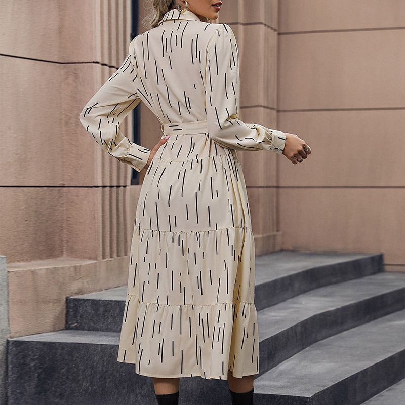 LOVEVOP foreign trade lapel shirt long dress Hot autumn new 2025 cross-border long-sleeved button-down printed dress