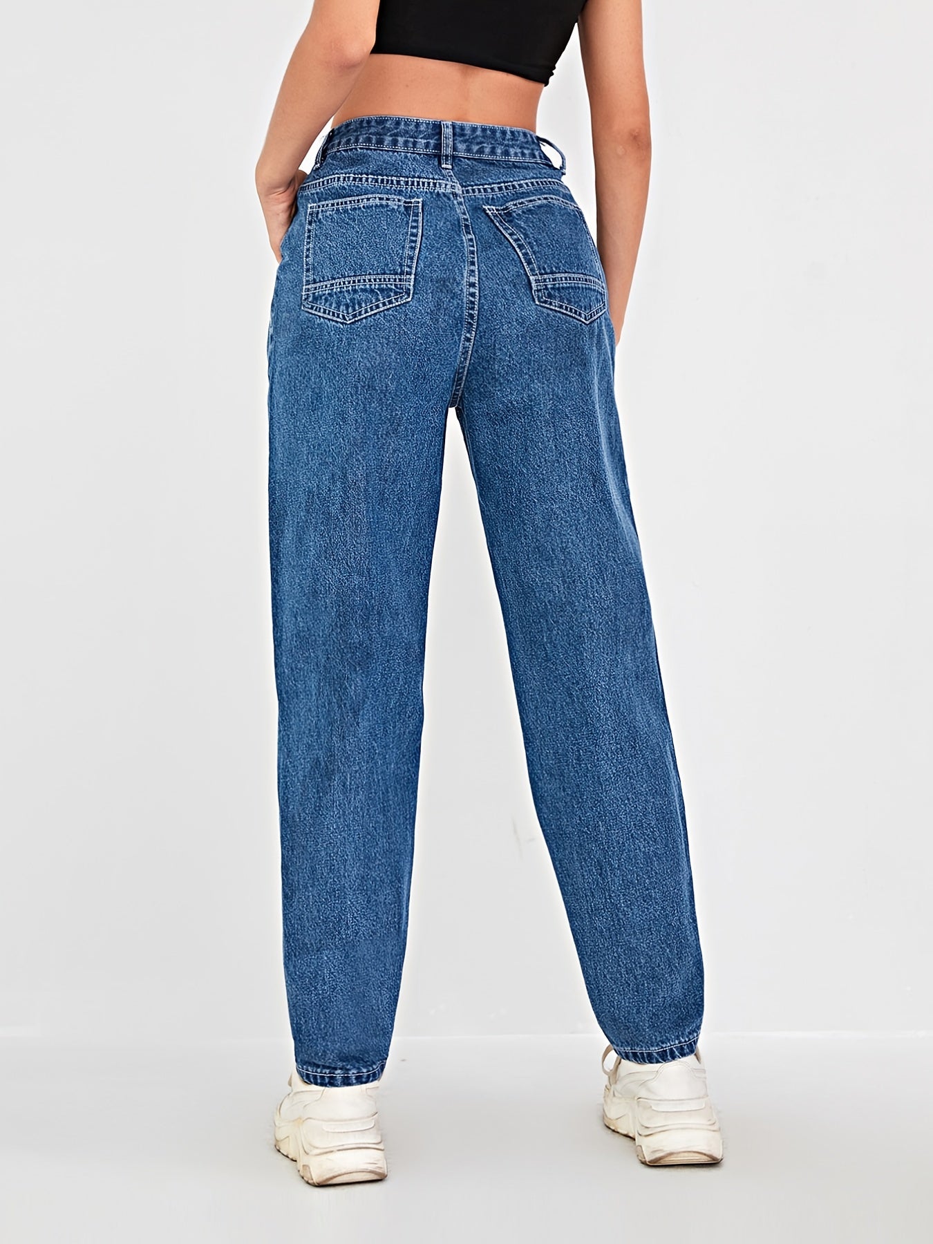 「lovevop」High Waist Straight Jeans, Slash Pockets Loose Fit High Rise Casual Non-Stretch Denim Pants, Women's Denim Jeans & Clothing