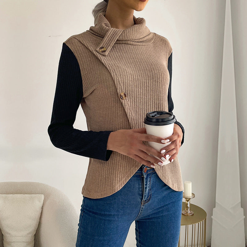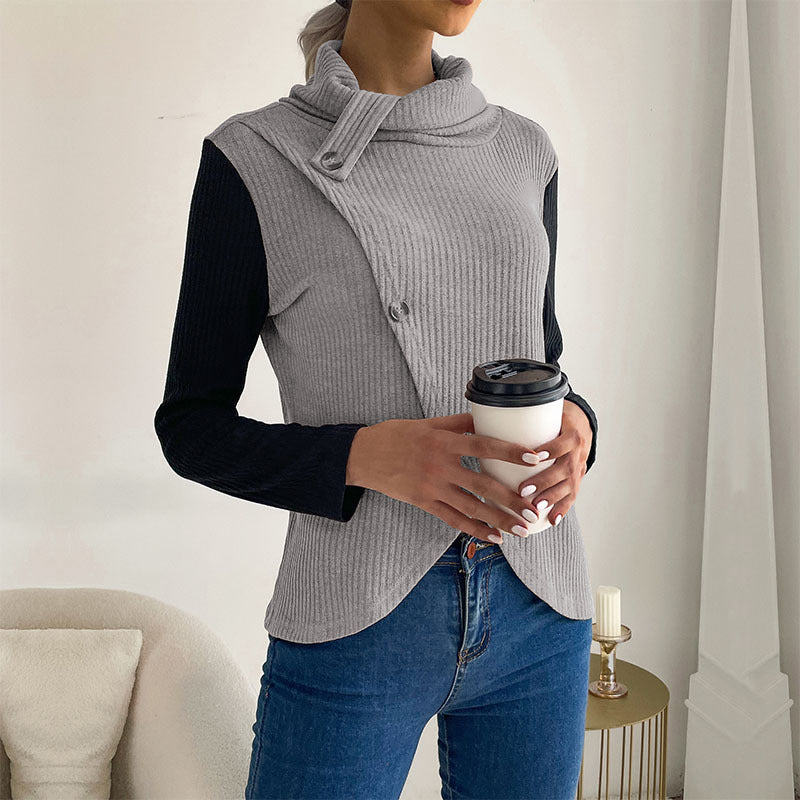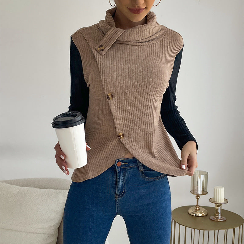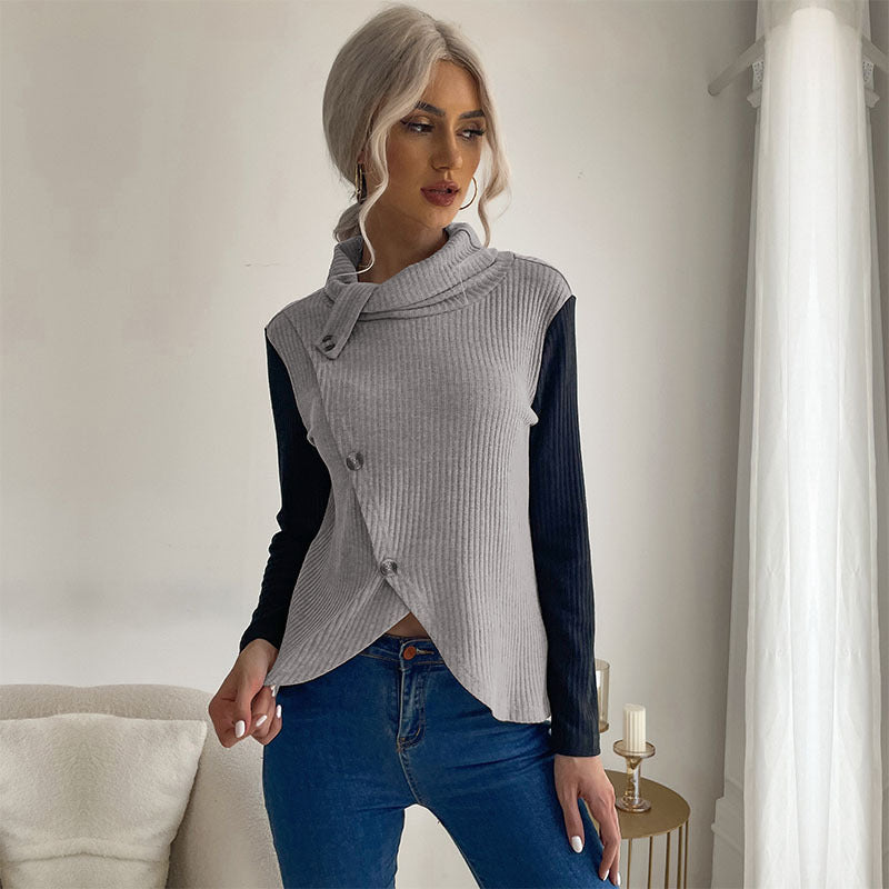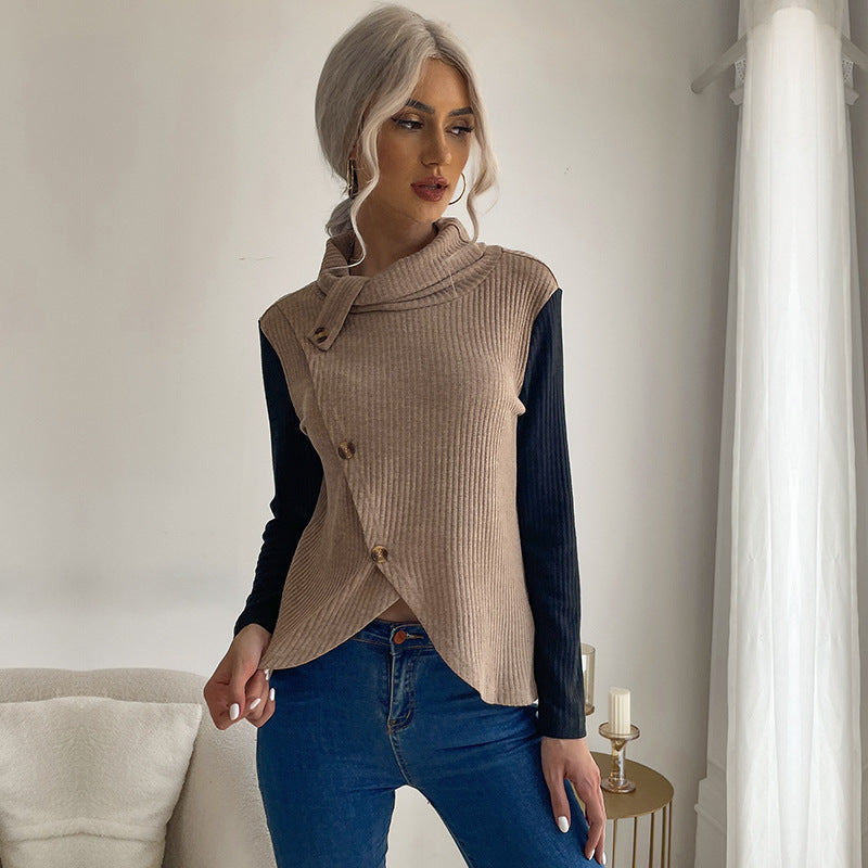 LOVEVOP Hot New Cross-border Hot Trade Splicing Top 2025 Casual Women's Autumn Long Sleeve Pullover Knitted Sweater