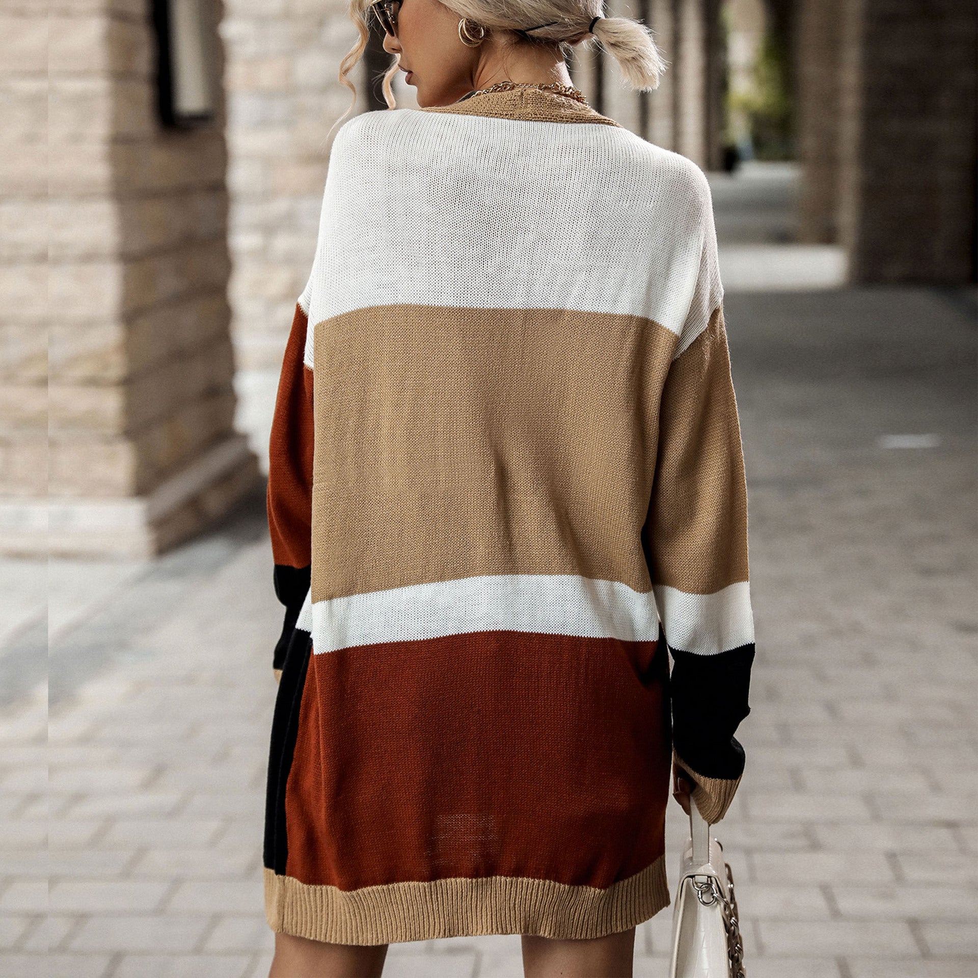 LOVEVOP women's clothing Hot autumn and winter 2025 splicing design sense knitted sweater contrasting color trade sweater jacket