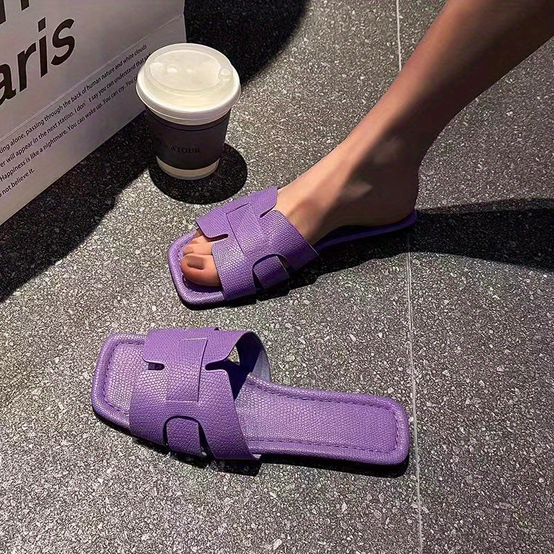 「lovevop」Women's Stylish Square Toe Flat Sandals - Open Toe Slides for a Minimalist Look!