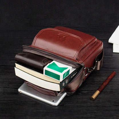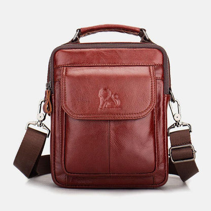 lovevop Men Genuine Leather Retro Business Leather Shoulder Bag Crossbody Bag
