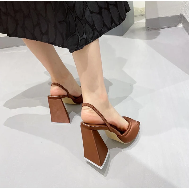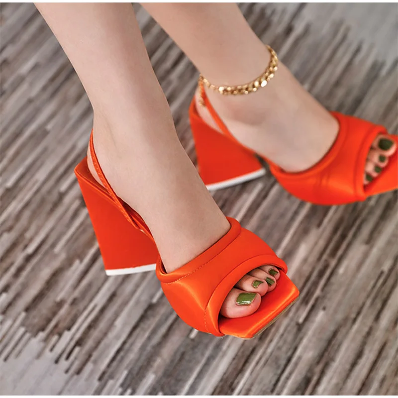 Triangle High Heels Summer Sandals For Women New Fashion Ladies Party Shoes Wedding PU Back Strap Female Dress Sandals 06-23