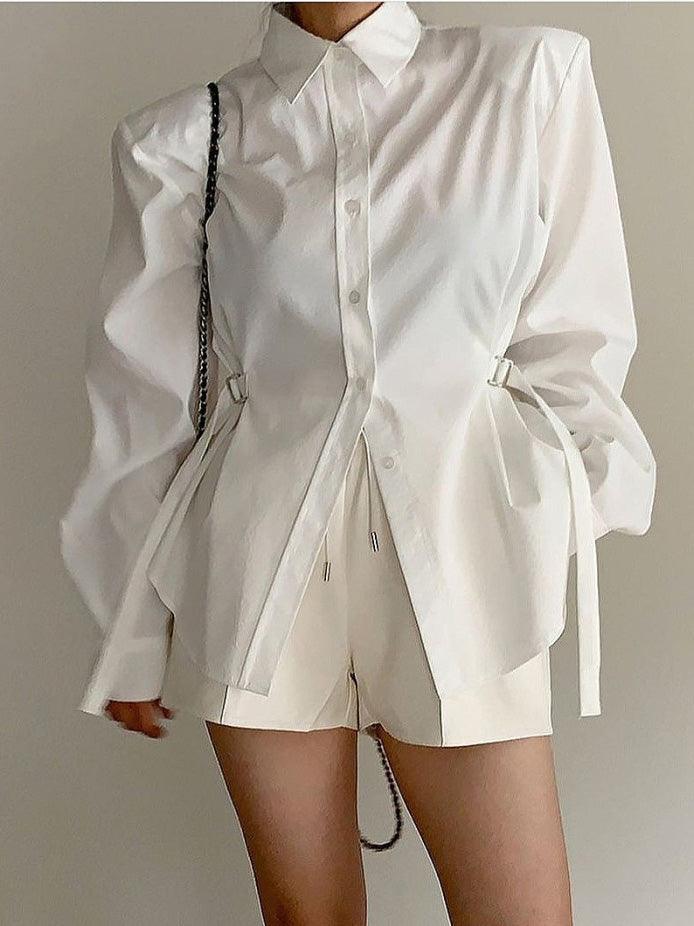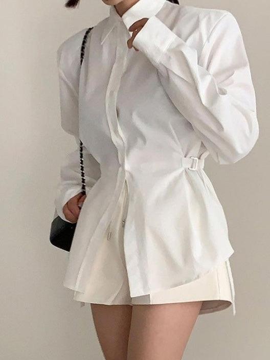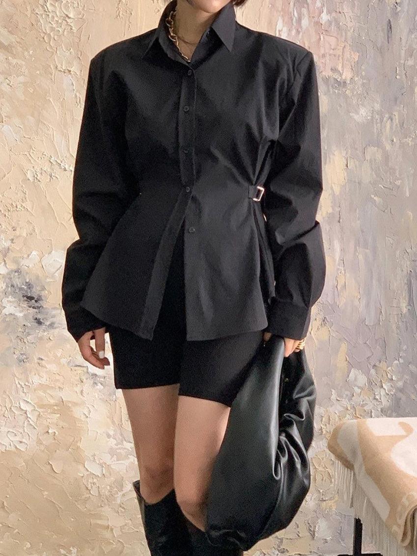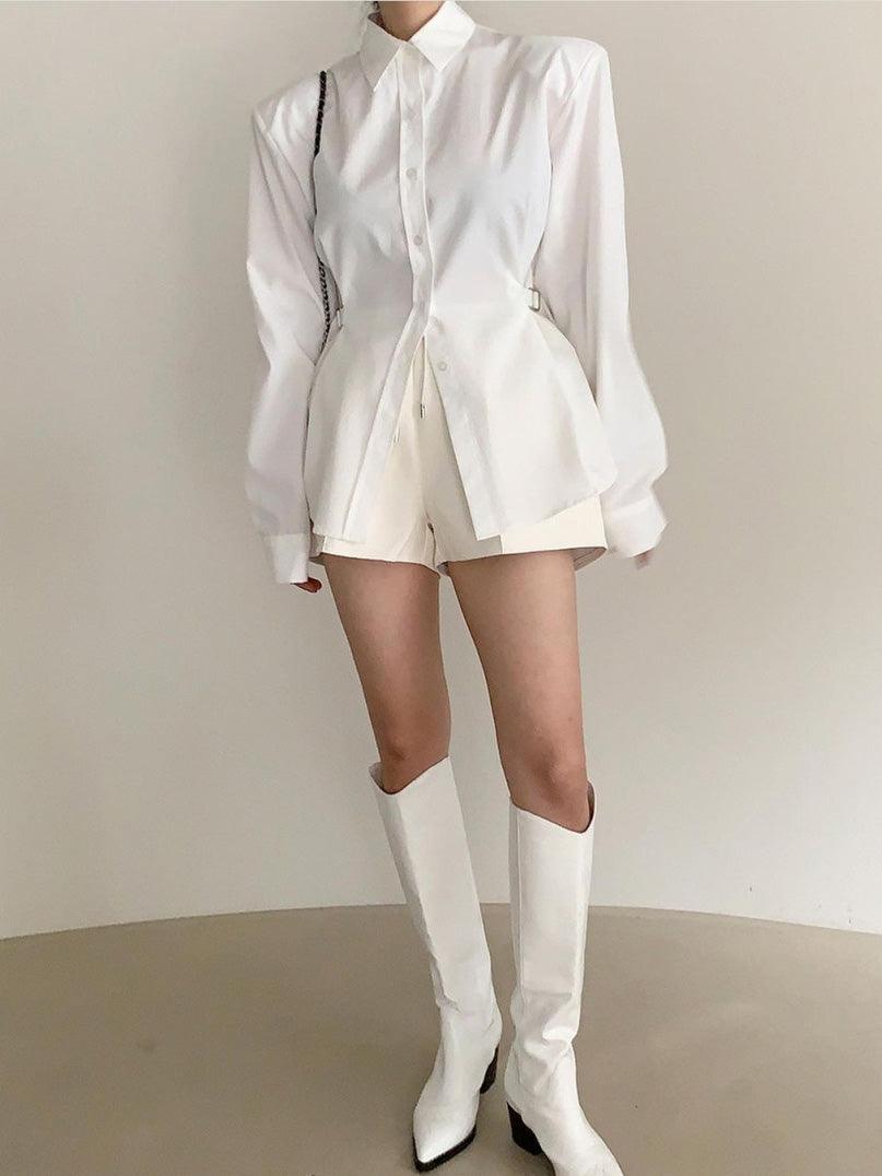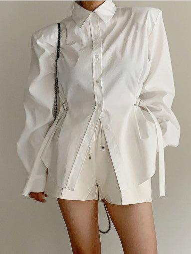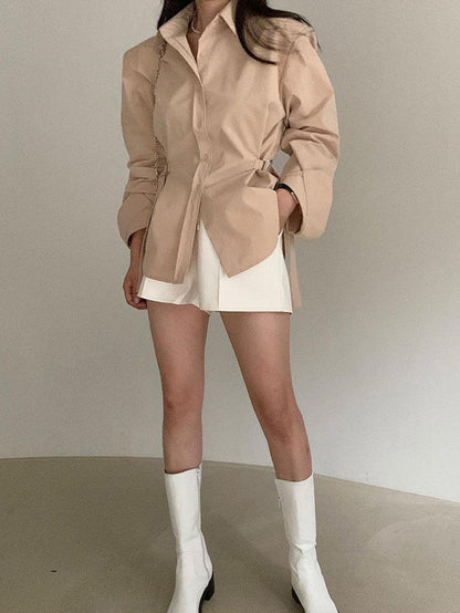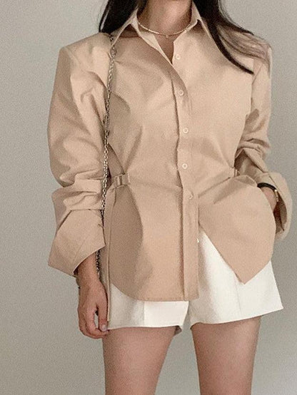 lovevop Simple Adjustable Waist Padded Long Sleeve Shirt