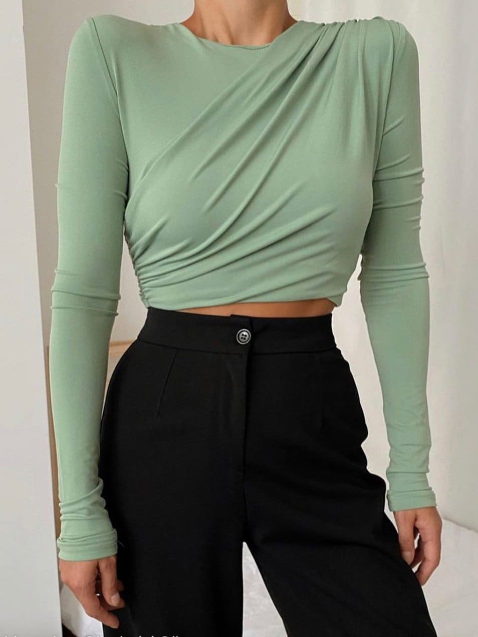 lovevop Solid Fitted Crew Neck Shoulder Pads T-Shirt