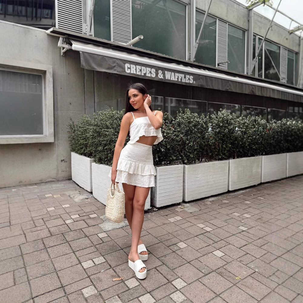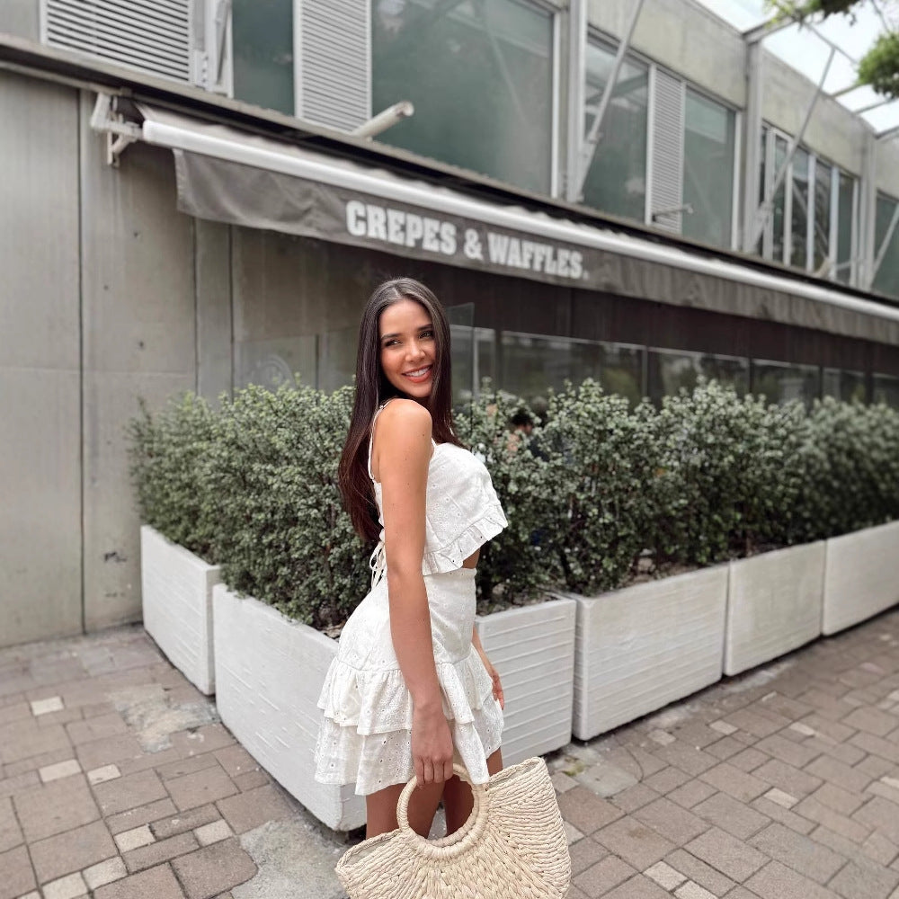 summer new New travel beach ins suspender pure desire high waist fairy skirt set