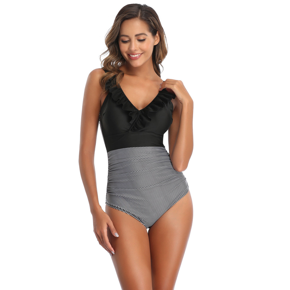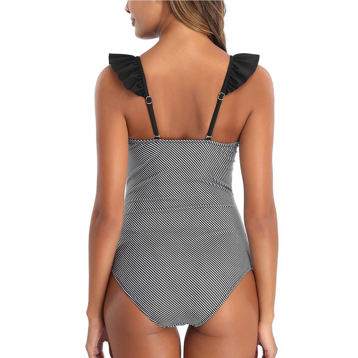 「🎉Mother's Day Sale - 40% Off」V Neck Ruffled One-Piece Lace Up Swimsuit