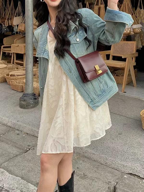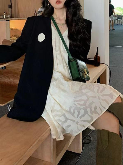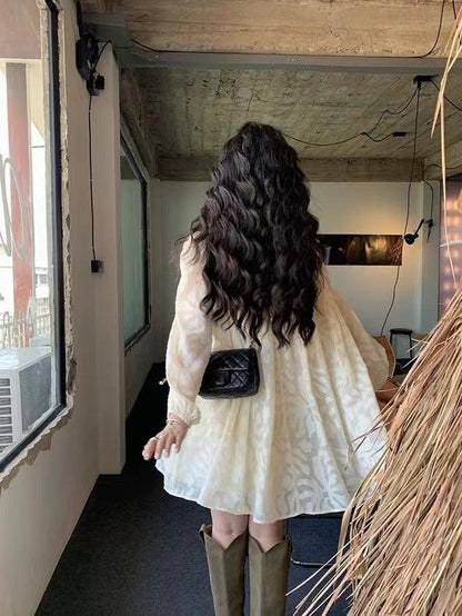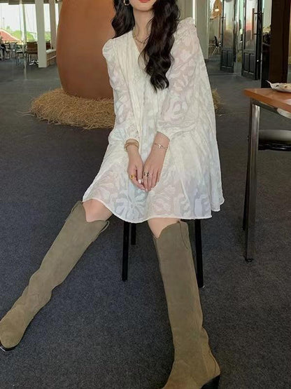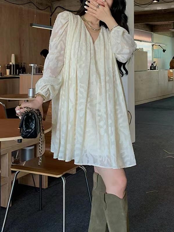 lovevop Vintage V Neck Jacquard Dress