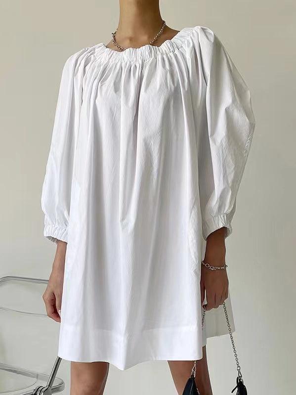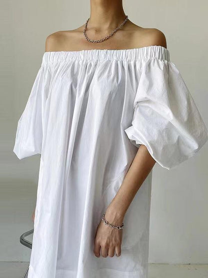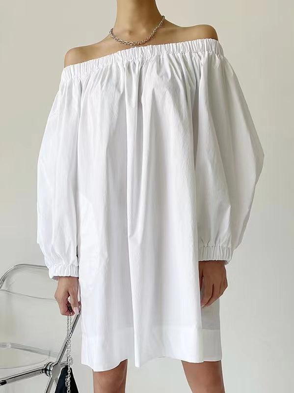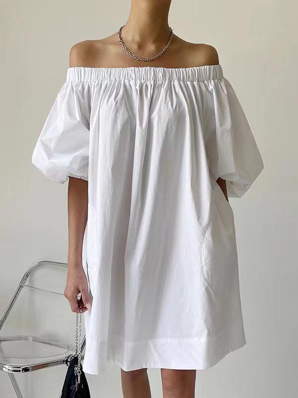 lovevop White One-shoulder Puff Sleeve Cotton Dress