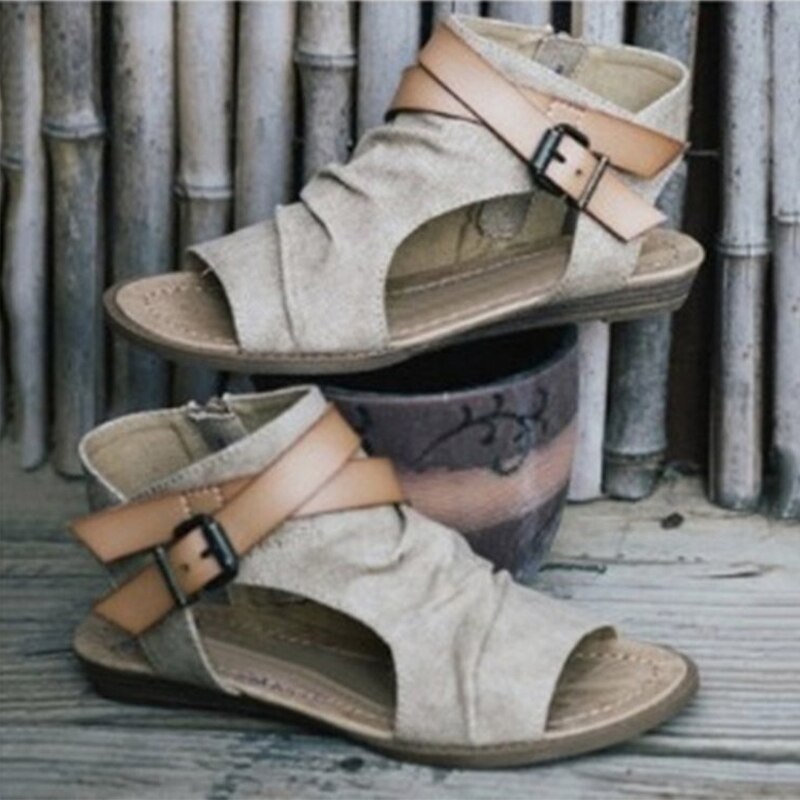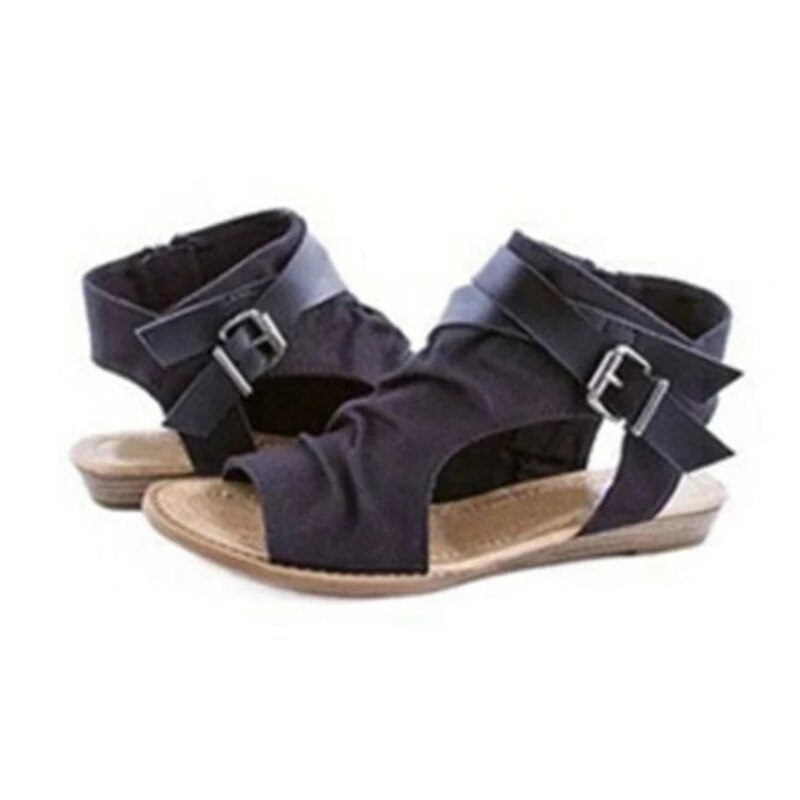 lovevop Women Shoes Ladies Gladiator Women Flat Denim Sandal Shoes Big Size 36-42 Summer Buckle Sandals Shoes Zapatillas Casa Zapatos