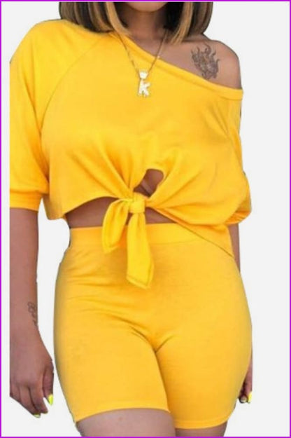 lovevop Women's Summer Pure Color T-shirt And Shorts Suit FW6368