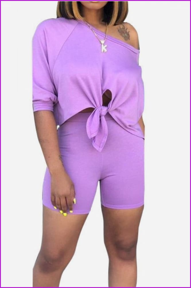 Women's Summer Pure Color T-shirt And Shorts Suit